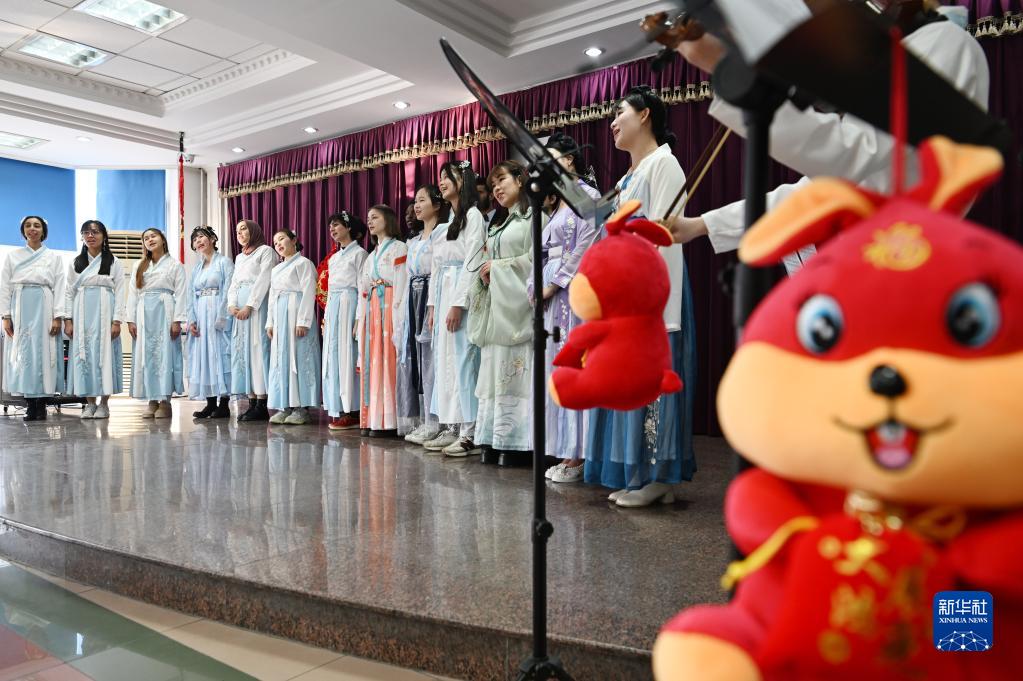 當日,天津大學(xué)國際教育學(xué)院的留學(xué)生為參加“校園春晚”加緊排練文藝節目。他們身穿漢服演唱中文歌曲,排練傳統古典舞蹈等節目,感受中國傳統文化的魅力。