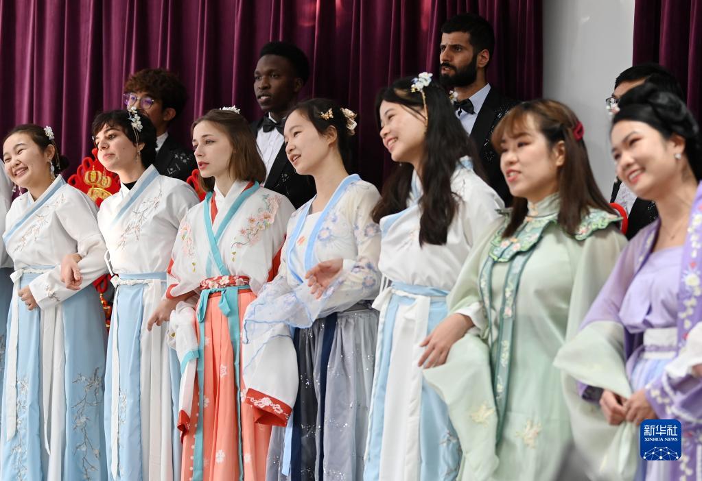 當日,天津大學(xué)國際教育學(xué)院的留學(xué)生為參加“校園春晚”加緊排練文藝節目。他們身穿漢服演唱中文歌曲,排練傳統古典舞蹈等節目,感受中國傳統文化的魅力。