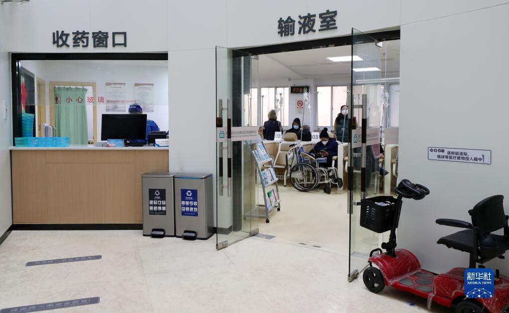 這是1月4日拍攝的上海市斜土街道社區衛生服務(wù)中心輸液室外景。
