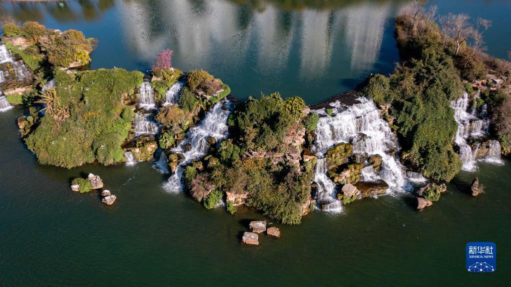 1月4日拍攝的昆明市瀑布公園一景(無(wú)人機照片)。