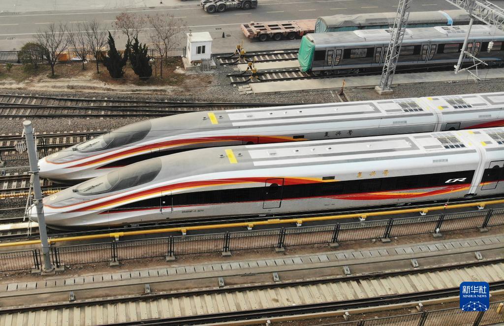 1月4日拍攝的兩列“復興號”智能動(dòng)車(chē)組(無(wú)人機照片)。