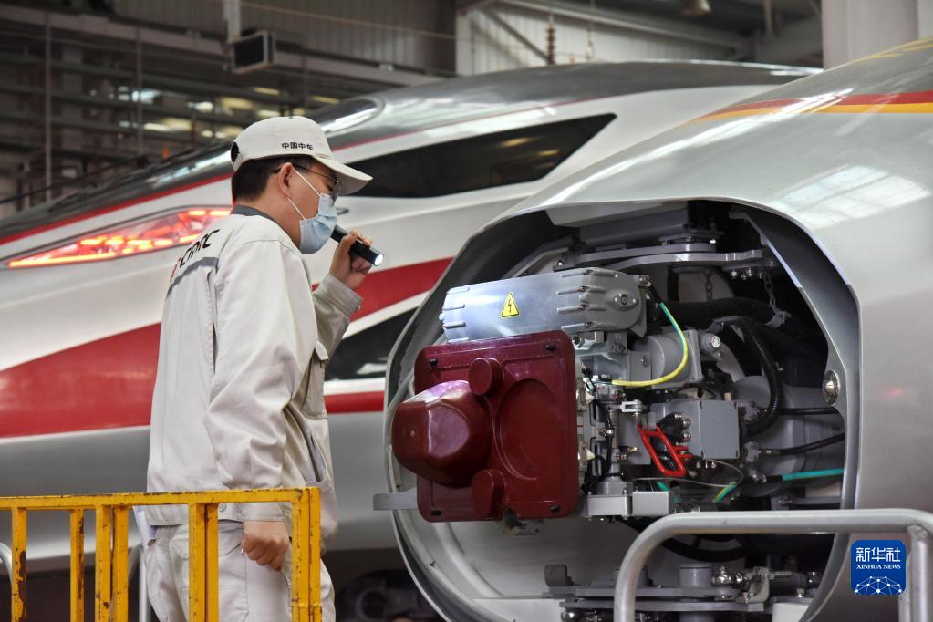 1月4日,一名技術(shù)人員在查看“復興號”智能動(dòng)車(chē)組。