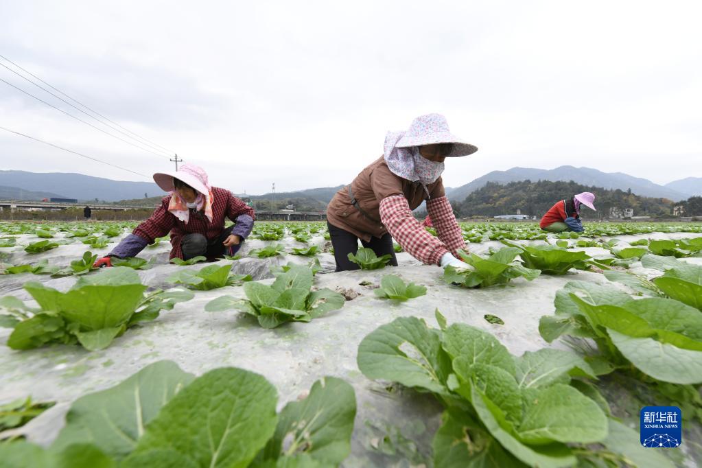 1月5日,福建省福州市連江縣浦口鎮柘尾村的農民在田間勞作。