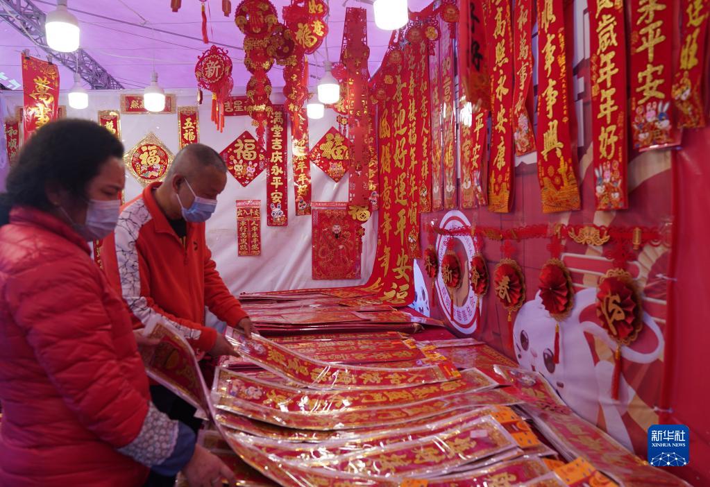 春節臨近,年味漸濃,由昆明市慈善總會(huì )主辦的首屆慈善文化年貨節舉行,眾多市民來(lái)這里選購以“兔年”為主題的節日飾品。
