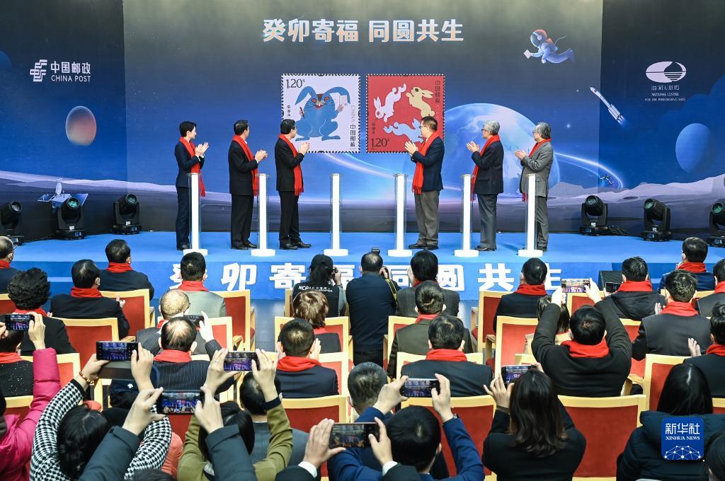 1月5日,嘉賓在郵票首發(fā)儀式現場(chǎng)為《癸卯年》特種郵票啟幕。