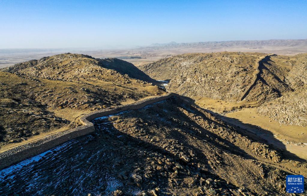 固陽(yáng)秦長(cháng)城局部(1月6日攝,無(wú)人機照片)。