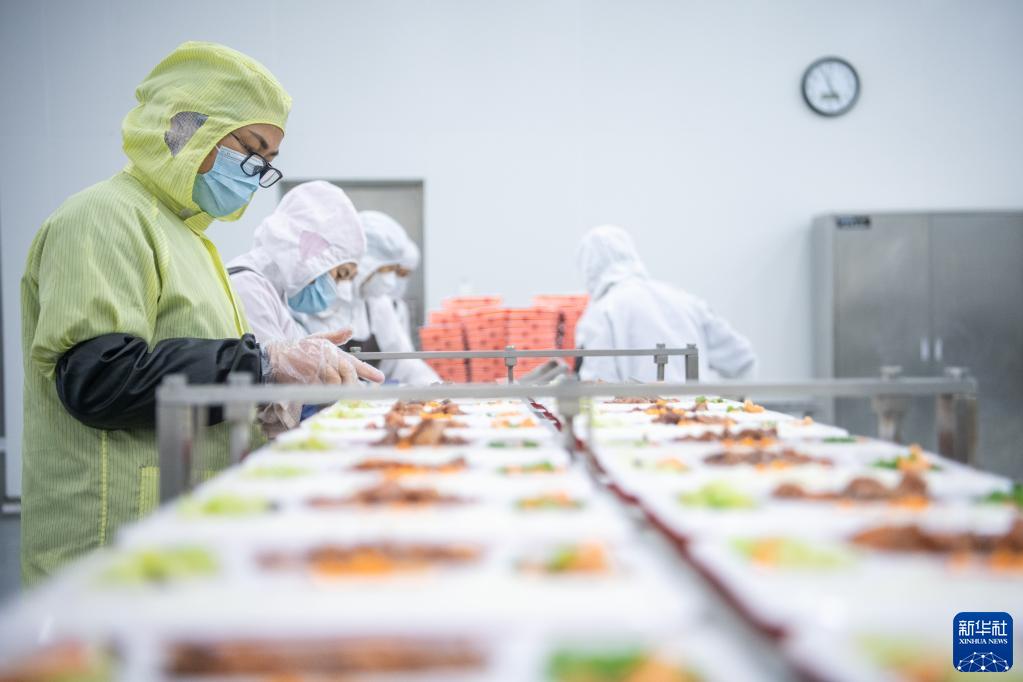 1月6日,武東餐飲基地工作人員在分裝盒飯。