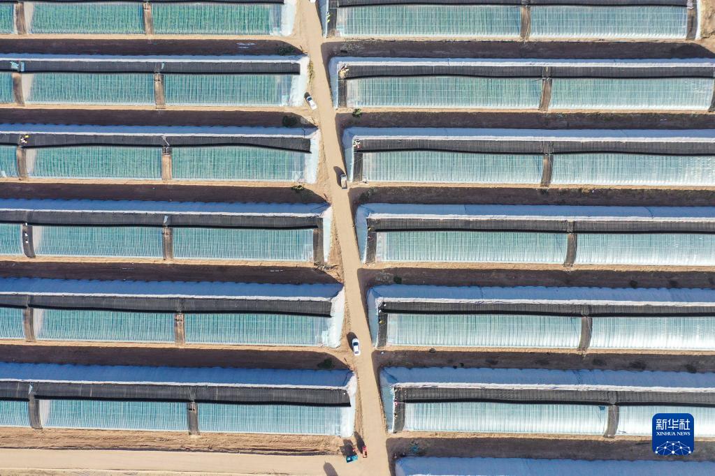 這是1月6日在達拉特旗樹(shù)林召鎮林原村拍攝的大棚(無(wú)人機照片)。