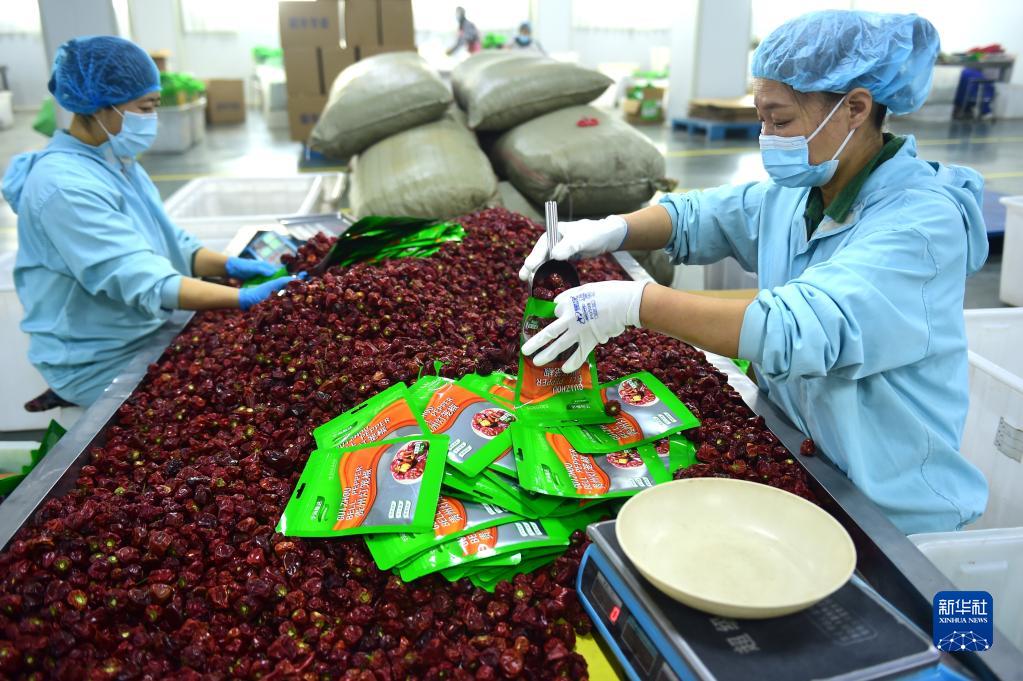 1月6日,滄州市新華區一家食品企業(yè)的工人在包裝調料。