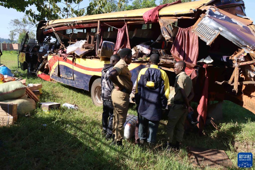 1月6日,在烏干達首都坎帕拉通往古盧的公路旁,人們查看事故現場(chǎng)。