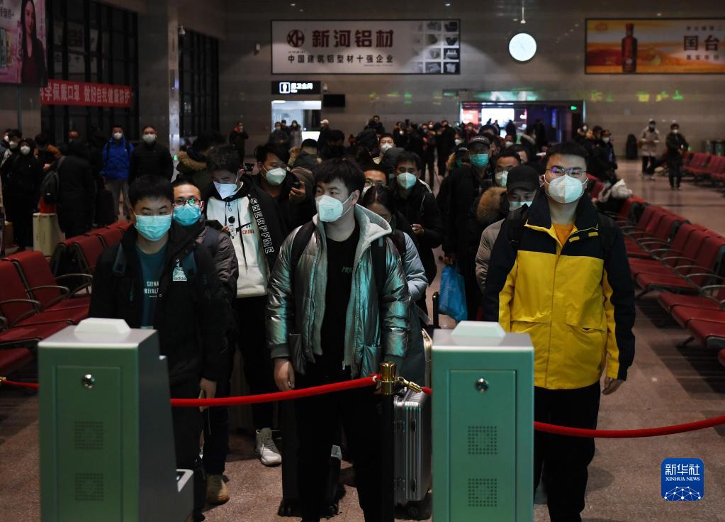 1月7日,旅客在北京西站排隊等候檢票。
