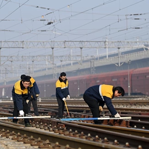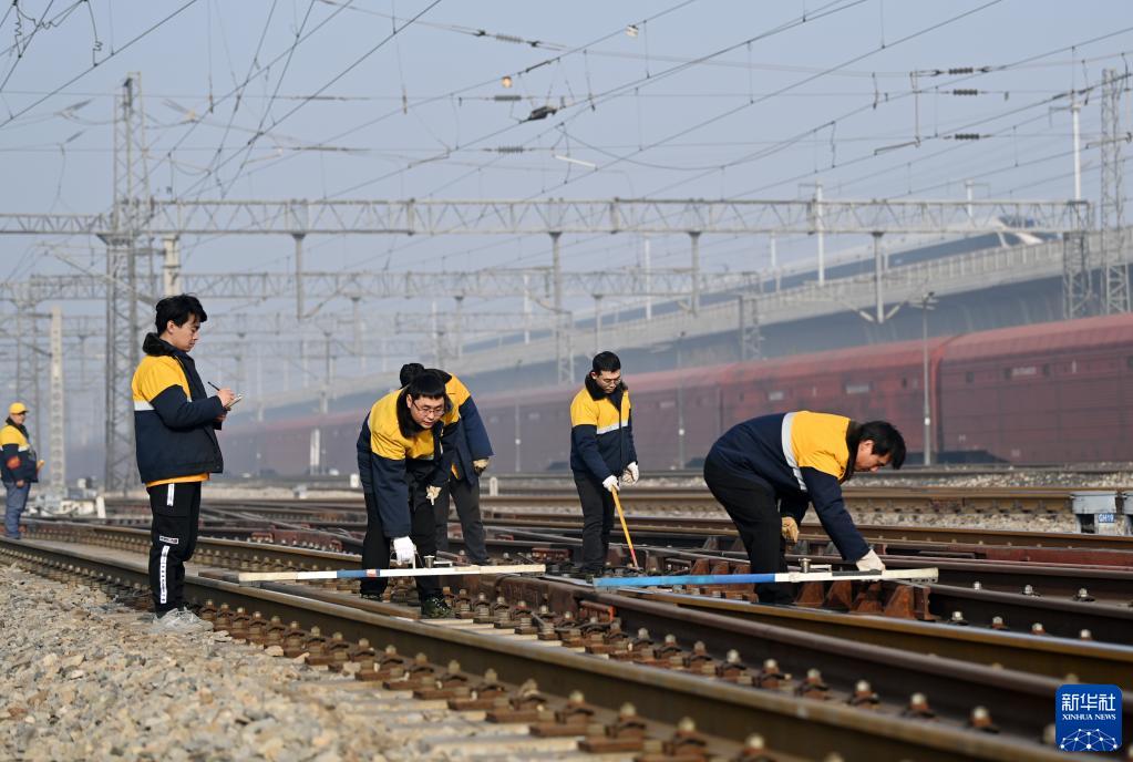 1月6日,“大學(xué)生工區”的職工在天津市北辰區北倉站內進(jìn)行作業(yè)。