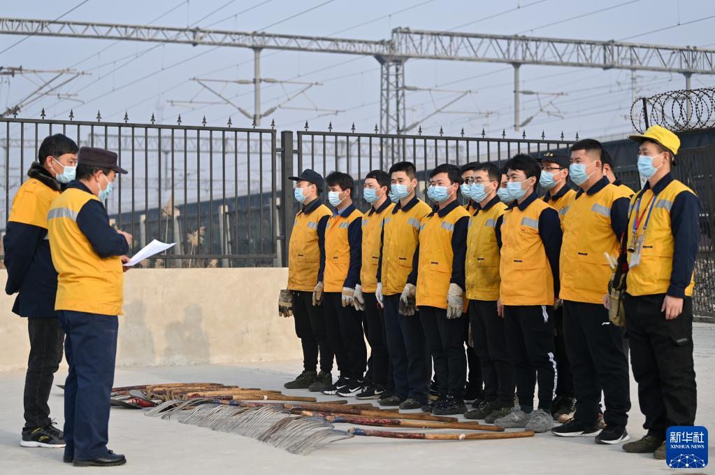 1月6日,“大學(xué)生工區”的職工在戶(hù)外集合聽(tīng)取工作安排。新華社記者 李然 攝