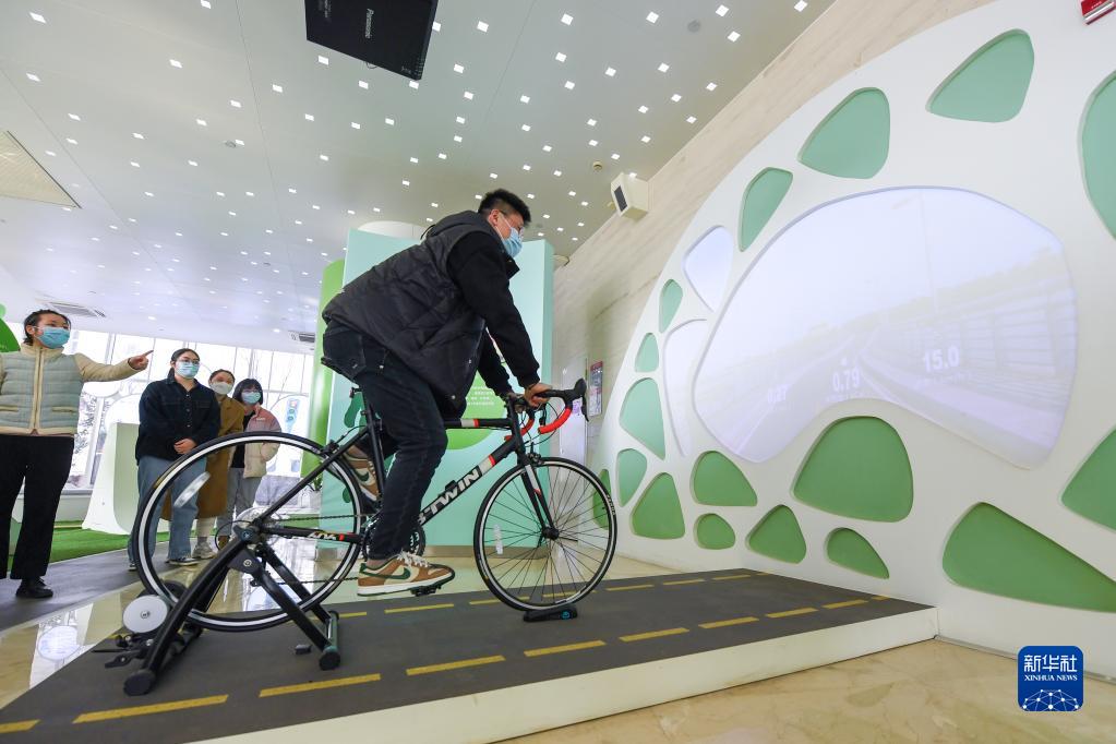 在蘇州工業(yè)園區公民健康素養教育基地,一位市民在體驗健身游戲(1月6日攝)。