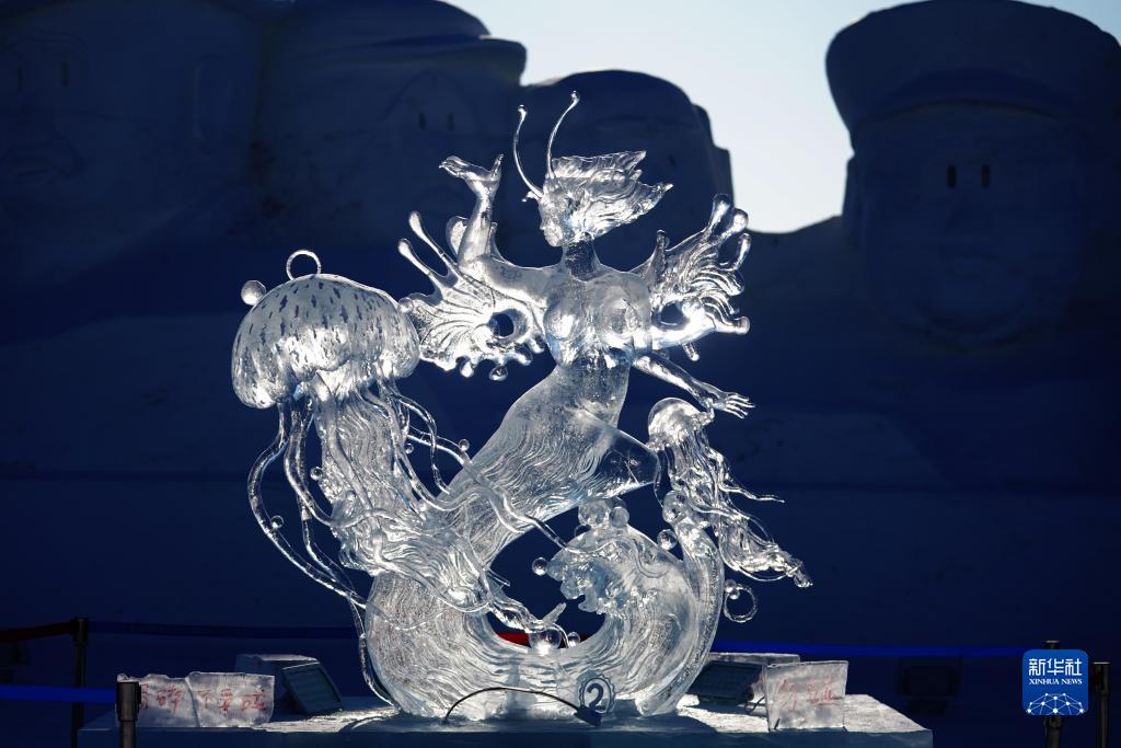 這是在比賽中獲得二等獎的冰雕作品《舞者》(1月5日攝)。
