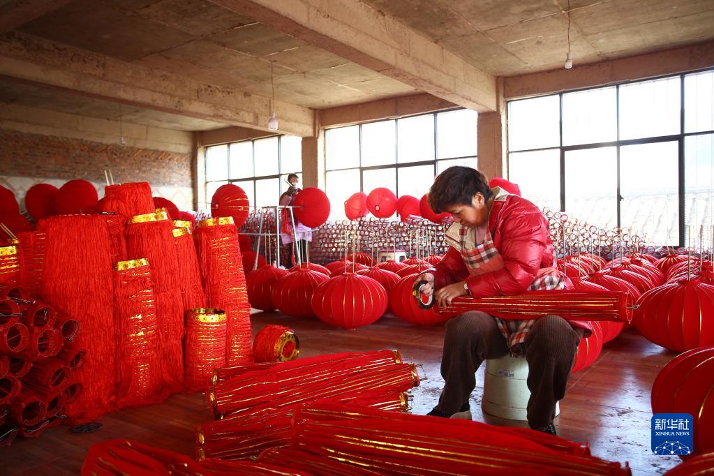 春節臨近,燈籠俏銷(xiāo),不少地方加緊趕制燈籠,供應節日市場(chǎng)。