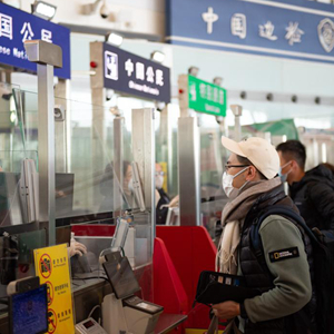 1月8日,入境旅客在首都國際機場(chǎng)T3-E邊檢查驗柜臺辦理入境手續。