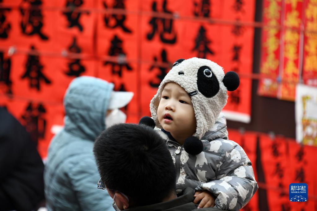 1月8日,一名小朋友在李村大集上好奇張望。