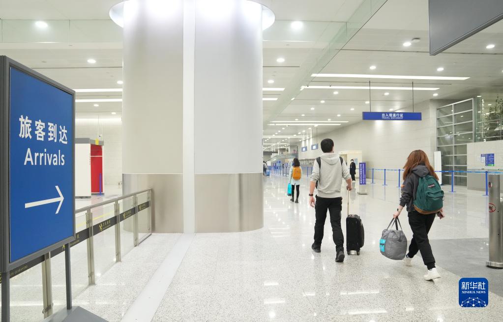 1月8日,入境旅客抵達上海浦東國際機場(chǎng)。