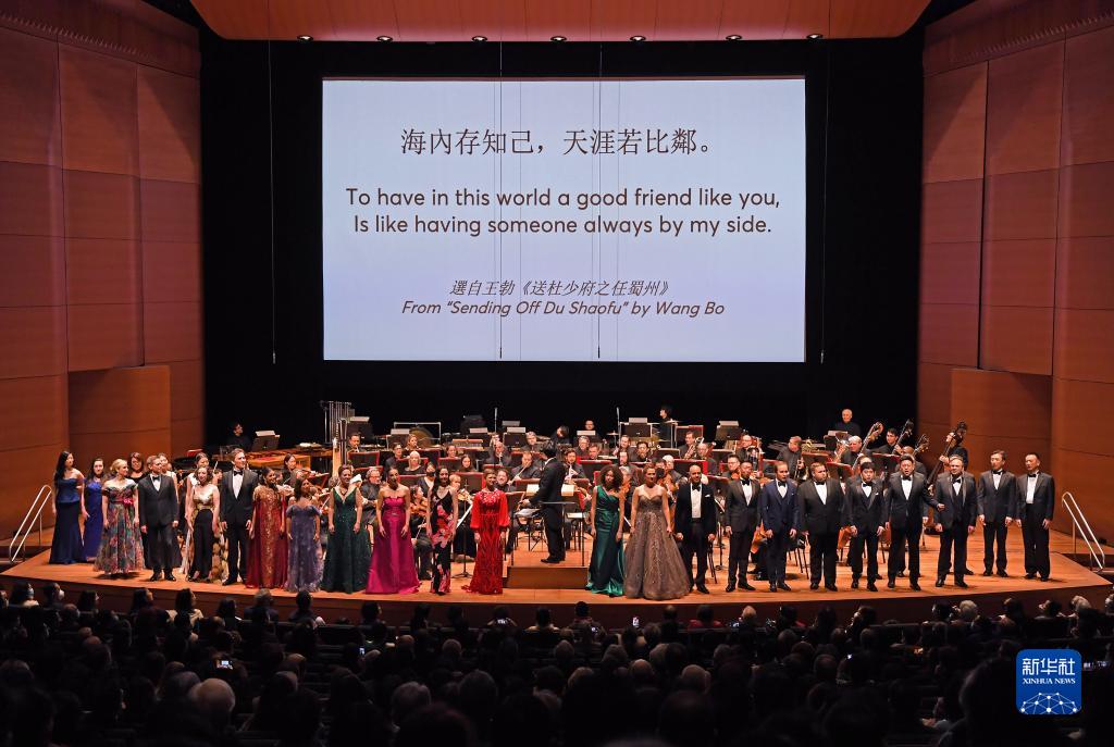 “唐詩(shī)的回響”新春音樂(lè )會(huì )7日晚在美國紐約林肯中心舉行。中國常駐聯(lián)合國代表張軍、第77屆聯(lián)大主席克勒希、中國駐紐約總領(lǐng)事黃屏、聯(lián)合國高級官員、近40個(gè)國家常駐聯(lián)合國使節以及紐約各界人士約700人觀(guān)看了演出。新華社記者 李睿 攝