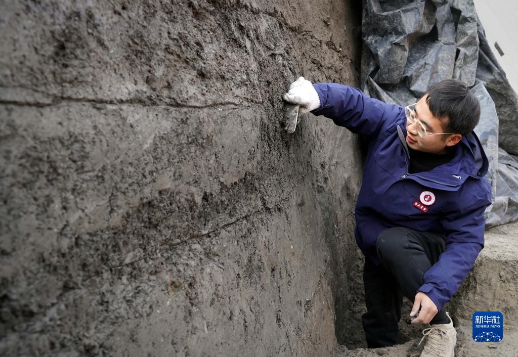 考古工作人員在河南商丘宋國故城遺址發(fā)掘現場(chǎng)作業(yè)(1月6日攝)。