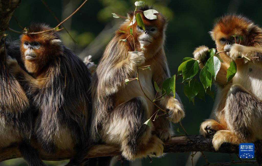 這是2022年4月26日在四川白河國家級自然保護區里拍攝的川金絲猴。