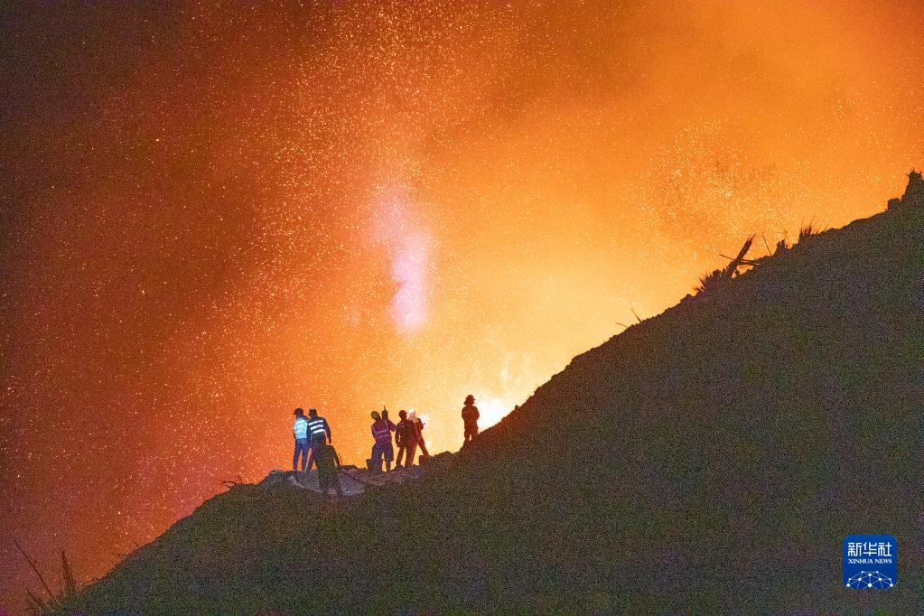 2022年8月25日晚,在重慶市北碚區縉云山,現場(chǎng)救援人員在火場(chǎng)一線(xiàn)滅火。截至8月26日8時(shí)30分,經(jīng)各方共同努力,重慶市森林火災各處明火已全部撲滅,全面轉入清理看守階段,無(wú)人員傷亡和重要設施損失。
