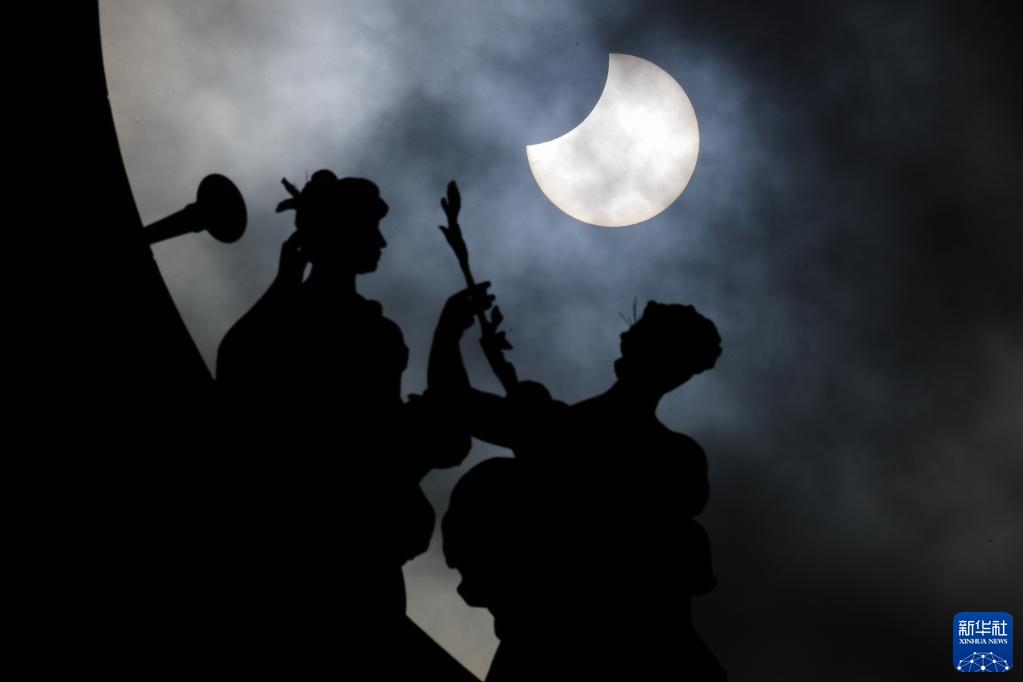 這是2022年10月25日在比利時(shí)布魯塞爾五十周年紀念公園拍攝的日偏食。