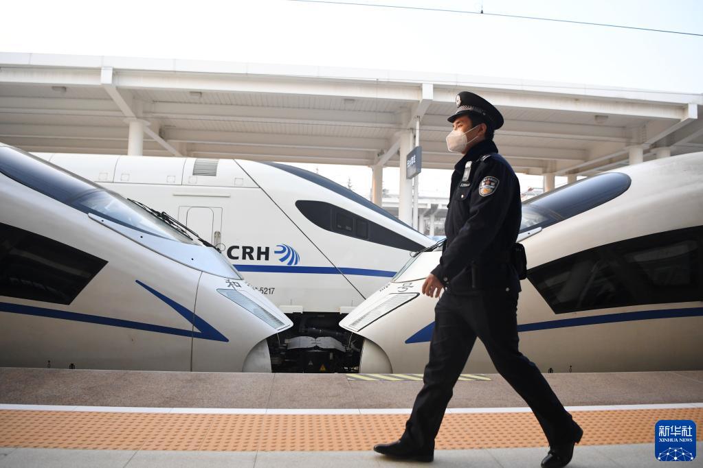 在12個(gè)半小時(shí)的動(dòng)車(chē)運行時(shí)間里,白旭偉穿梭于各節車(chē)廂,仔細查看車(chē)廂重點(diǎn)部位、耐心回答旅客咨詢(xún)、對重點(diǎn)旅客進(jìn)行詢(xún)問(wèn)檢查、和列車(chē)工作人員一起疏導春運客流……白旭偉和所有乘警一樣,在千里鐵道線(xiàn)上默默守護著(zhù)旅客的平安出行。