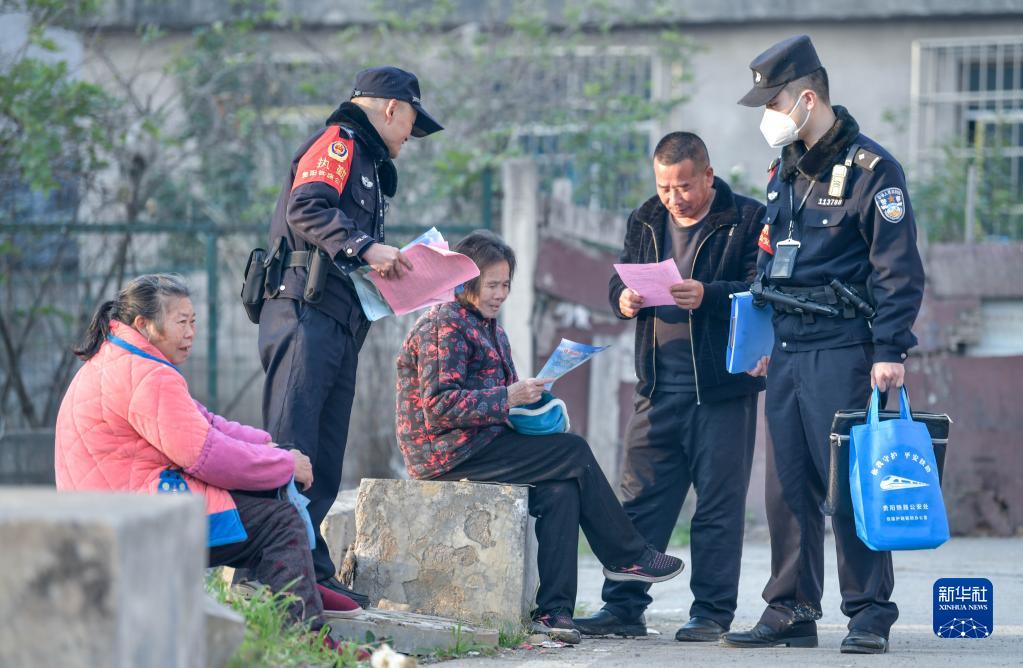1月8日,鐵路警察王云(左二)和謝源(右一)向居住在鐵路沿線(xiàn)的村民發(fā)放鐵路法治宣傳資料。