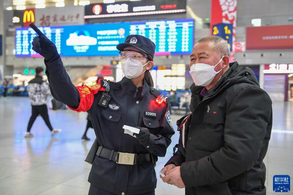 春運期間,長(cháng)春站客流持續增加。朱榮超和同事認真執勤,守護旅客出行平安。