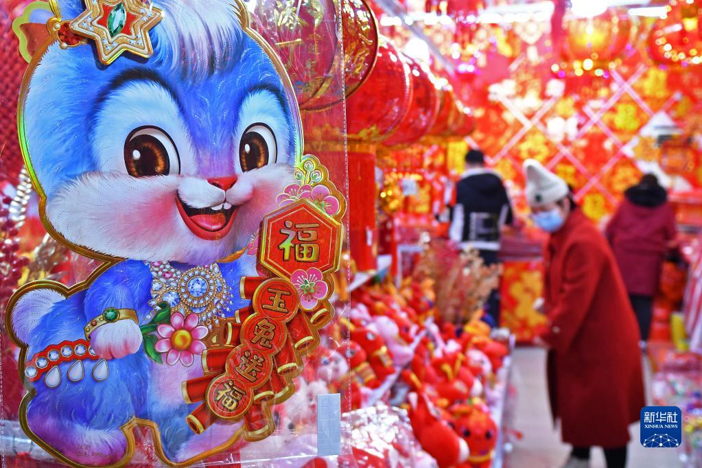 1月9日,在山東省煙臺市芝罘區三站節慶用品市場(chǎng),居民在選購春節飾品。新華社發(fā)(孫文潭 攝)