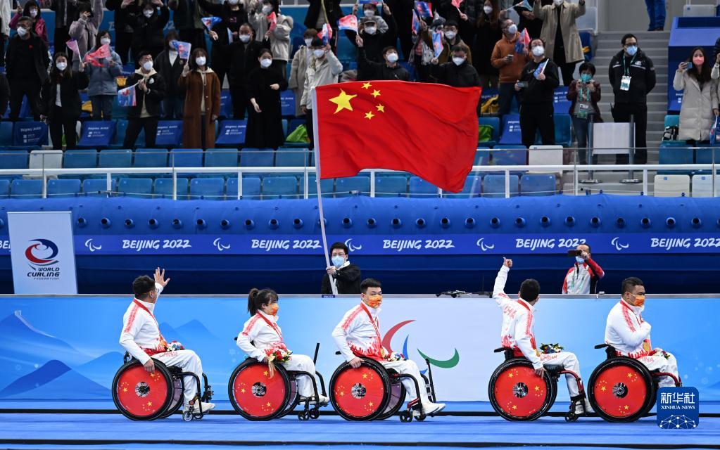 當日,在北京國家游泳中心“冰立方”舉行的北京2022年冬殘奧會(huì )輪椅冰壺金牌賽中,中國隊以8比3戰勝瑞典隊,奪得冠軍。