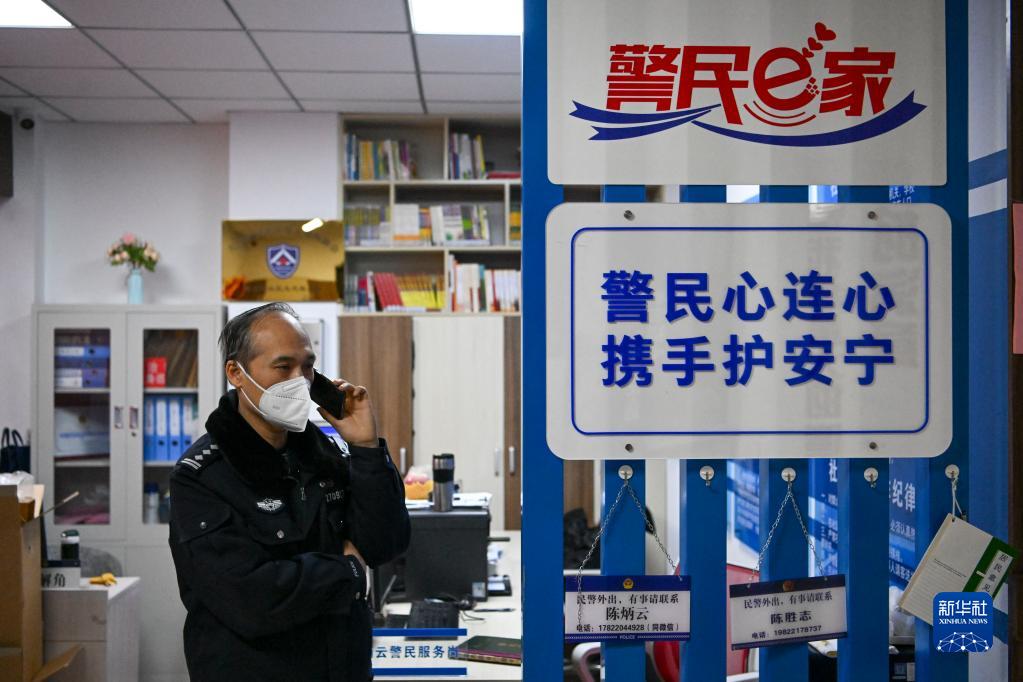 1月7日,陳炳云在社區警務(wù)室與居民通話(huà)。