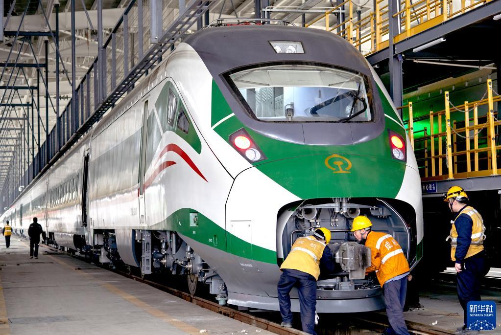 1月9日,在雙流客車(chē)技術(shù)整備所,檢修人員對新成昆鐵路“復興號”集中動(dòng)力動(dòng)車(chē)組進(jìn)行整備,新配置的9組動(dòng)車(chē)組將于1月13日上線(xiàn)運行。