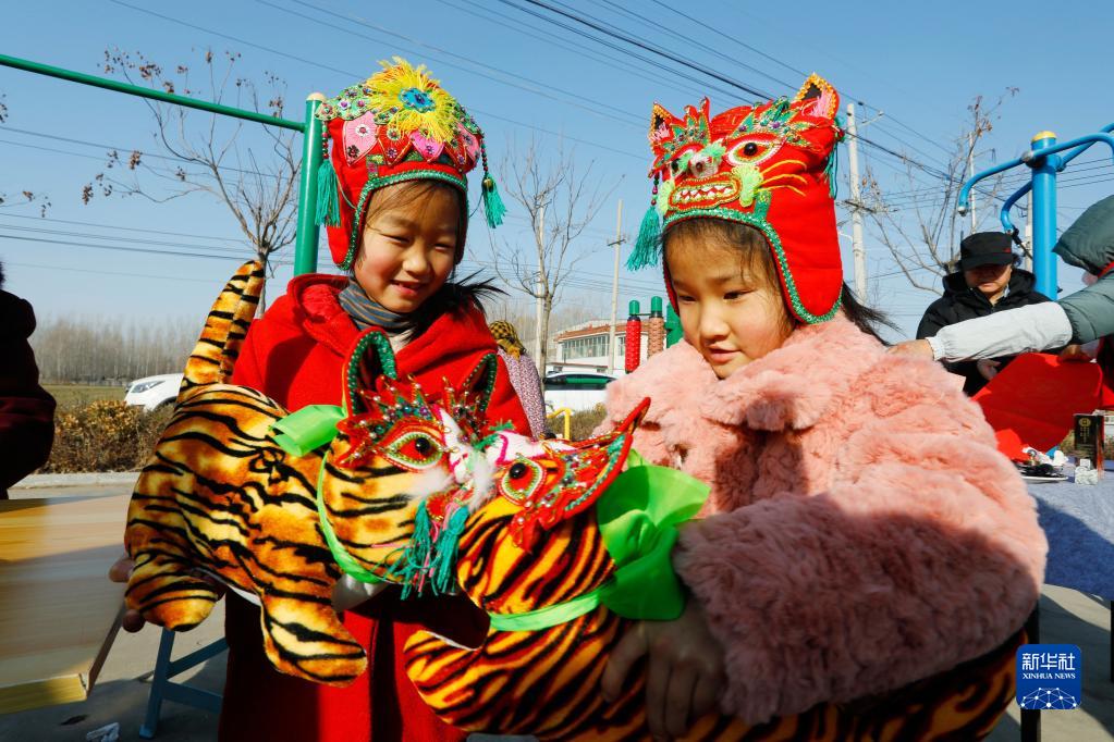 1月10號,在羊流鎮大洼村,小朋友對“布老虎”愛(ài)不釋手。