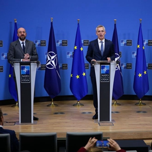北約和歐盟10日簽署合作聯(lián)合宣言,旨在加強歐洲集體防御,應對共同的安全威脅。新華社記者鄭煥松攝