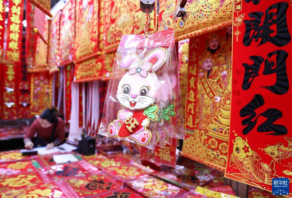 這是遼寧沈陽(yáng)五愛(ài)國際小商品城一家店鋪展售的春節飾品(1月11日攝)。