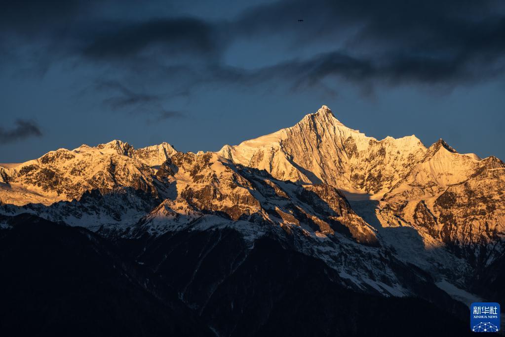 1月11日拍攝的梅里雪山“日照金山”美景。