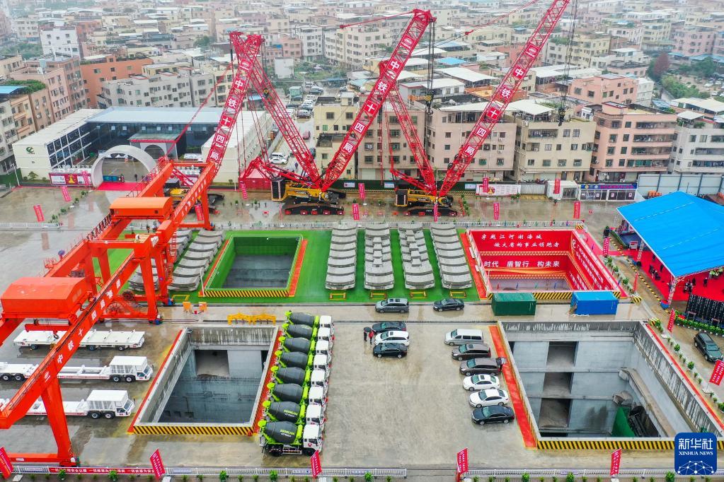 “大道先鋒號”盾構機在廣州海珠灣隧道工程西線(xiàn)隧道始發(fā)(無(wú)人機照片,1月11日攝)。