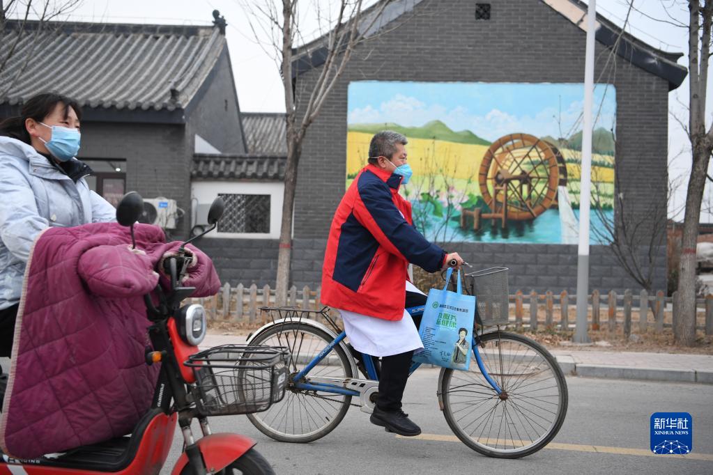 1月11日,河北省唐山市豐南區王打刁村“農村巡診小分隊”村醫孫慶良(右)和網(wǎng)格員孫秋愛(ài)在巡診途中。