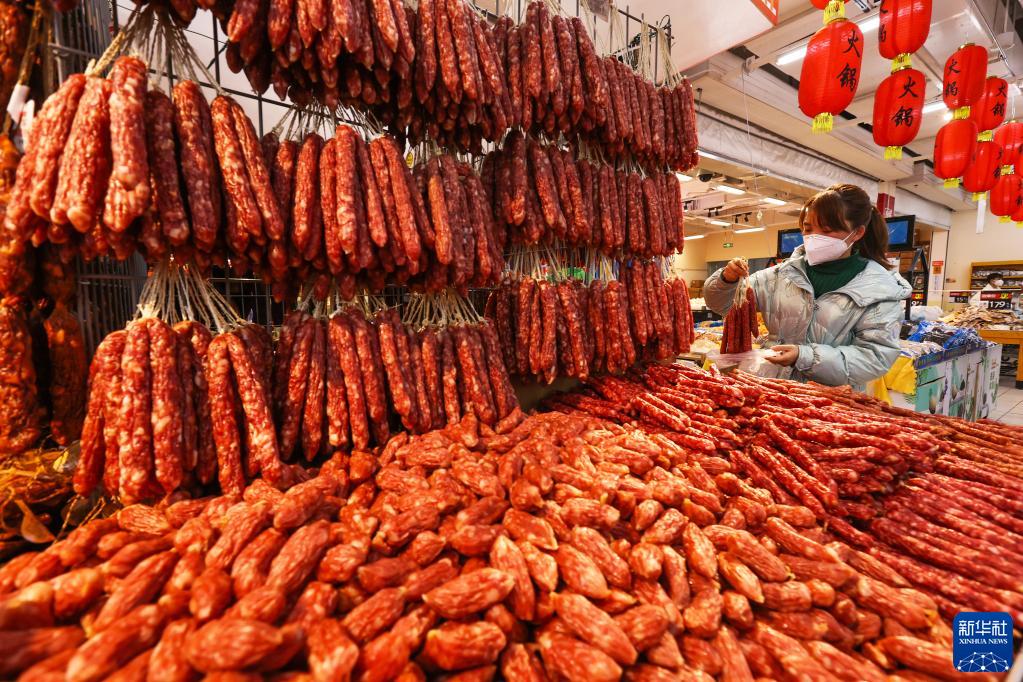 1月12日,市民在貴州省畢節市七星關(guān)區一家超市購買(mǎi)臘制品。