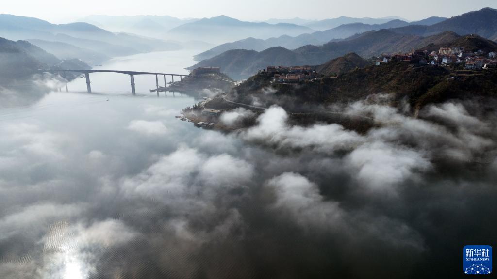 冬日,貴州省羅甸縣紅水河畔山巒起伏,云纏霧繞,景色如畫(huà)。
