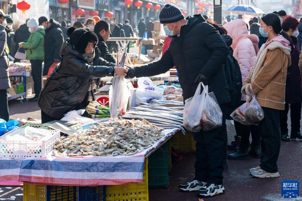 春節臨近,黑龍江省綏芬河市龍須溝步行街的年貨大集十分熱鬧。不少市民前來(lái)選購年貨,迎接新春的到來(lái)。