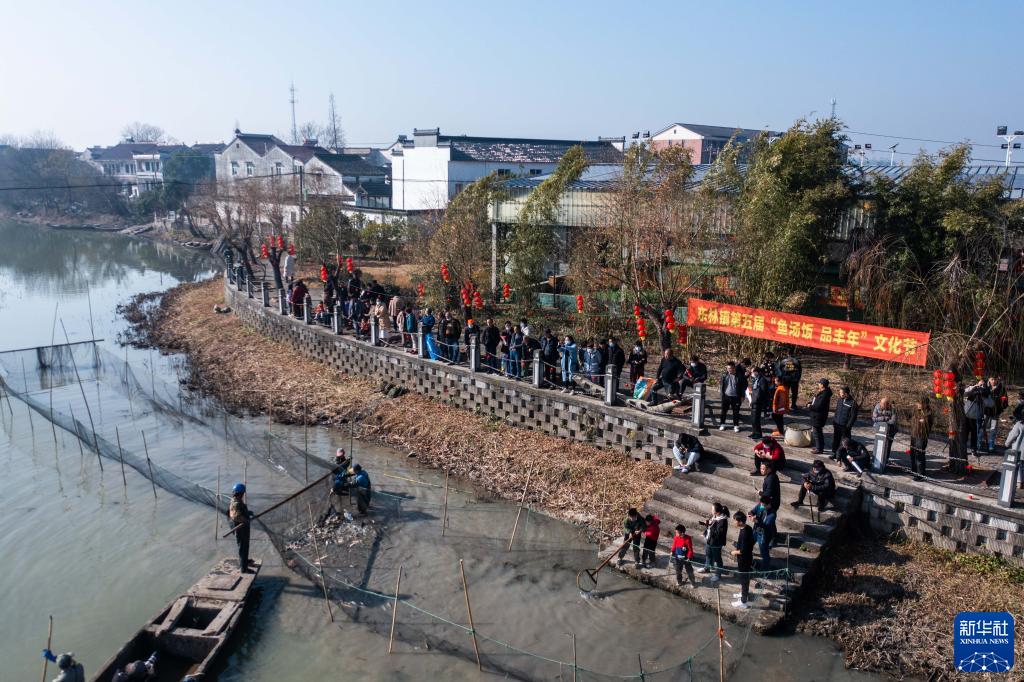 當日,浙江省湖州市吳興區東林鎮的水鄉“魚(yú)湯飯 品豐年”迎春活動(dòng)在泉慶村舉辦,活動(dòng)包括清塘捕魚(yú),魚(yú)湯飯、魚(yú)圓魚(yú)餅、刺毛圓子、手作年糕等年味美食的制作及品嘗,還有歌舞表演、非遺柳編現場(chǎng)展示、書(shū)法愛(ài)好者寫(xiě)春聯(lián)送祝福等。