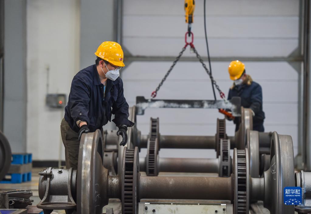 1月12日,工作人員在包頭車(chē)輛段檢修車(chē)間輪軸檢修間進(jìn)行檢修作業(yè)。