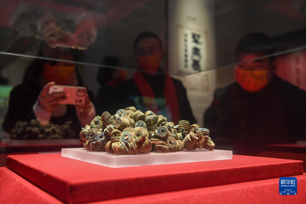1月12日,觀(guān)眾在大云山漢王陵博物館內參觀(guān)西漢“四銖半兩錢(qián)”。