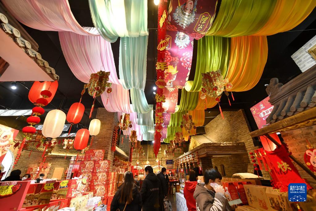 1月12日,顧客在河北省唐山市豐潤區2023“非遺”年貨節上游覽選購。