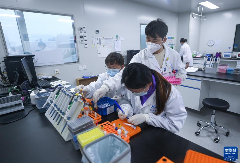 1月13日,在天目醫藥港醫藥產(chǎn)業(yè)孵化園的一家生物科技有限公司的實(shí)驗室里,工作人員在進(jìn)行實(shí)驗。