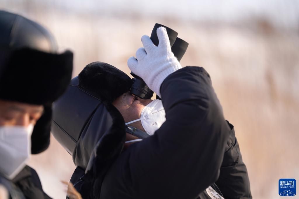 1月12日,國網(wǎng)撫遠市供電分公司抓吉供電所所長(cháng)白樺先(右)和工友費義偉在巡視東極線(xiàn)。